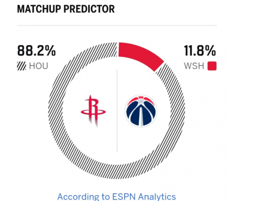 奇才这边近期4连败,16胜43负的战绩排在东部倒数第三,本赛季奇才的目标就是摆烂,大交易后,特雷杨和浓眉哥相继宣布因伤缺阵,球队的伤病大名单多达8人!显然,奇才从战意与实力上讲,都无力与火箭一战,ESPN对本场胜率进行了预测,火箭胜率高达88.2%,奇才则是11.8%。此役,奇才首发为库利巴利、乔治、里斯、特雷·约翰逊、卡林顿;火箭先发为伊森、杜兰特、申京、阿门、谢泼德。